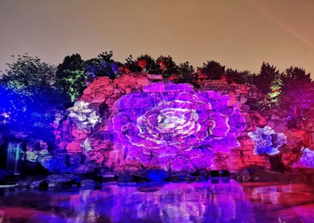本次項目投影的內容包括中華文化中經常出現的花草元素,例如牡丹、繁花、蝴蝶、神鹿等,以優美的景致展現了自然的美麗與寧靜。憑借贏康的大師級投影設計,影像內容與石園飛瀑異曲同工地融為一體,靈動的畫面為夜下的大唐芙蓉園增添了一抹瑰麗的亮色。