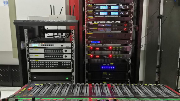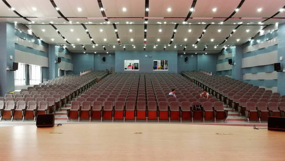 該校多用途禮堂的主揚聲器采用的是1000W雙15寸兩分頻音箱,搭配輔助音箱(無源超低頻、環繞補聲、返聽、臺唇)再匹配適宜功率功放及專業周邊處理器,合理的選型、布局,保障禮堂廳內各處都有足夠的聲壓,較高的傳聲增益,且聲場分布均勻、聲像一致性好、語言清晰度高、無噪聲干擾和音質缺陷,滿足各類會議擴聲、教學培訓、學術報告、校園小型演出、影音播放等多變多用途功能的場景下,都有著優秀的表現效果。中央控制系統的加入,能夠對系統設備和周邊設備隨不同的場景環境靈活控制與切換。