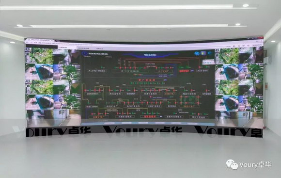 根據華聚能源調度中心現場情況,大屏幕顯示系統采用2.5°弧形拼接而成,顯示屏整屏長9.12米,寬2.88米,共26.26平方米拼接規模。Voury卓華P1.8微間距LED弧形屏拼接成的圓弧具有良好的過渡性,弧度自然,造型美觀,畫面完美、連貫,具備更寬廣的視角及自然舒適的視野,保證了完美的顯示效果,獲得了用戶好評。大屏幕顯示系統主要由微間距LED顯示屏、圖形拼接控制系統、LED屏體安裝支架、大屏幕控制軟件等部分構成,通過它可以將多路計算機信號、多路視頻信號在微間距LED大屏幕上進行動態綜合顯示。