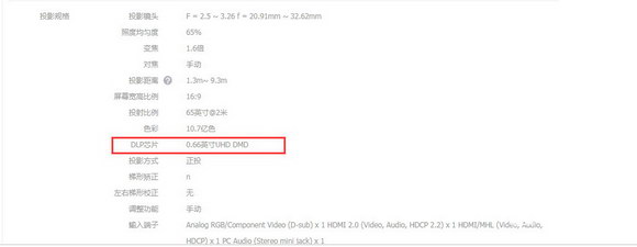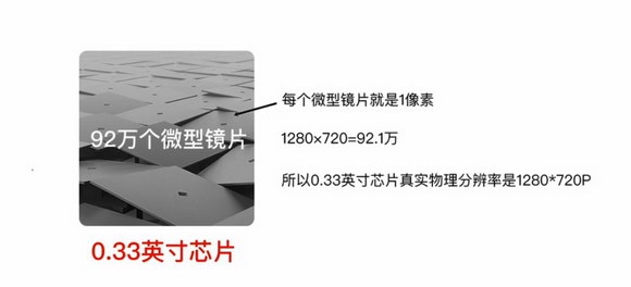 真1080P:0.47DMD芯片具有207萬個微鏡,可以投出1920 x 1080個像素