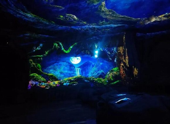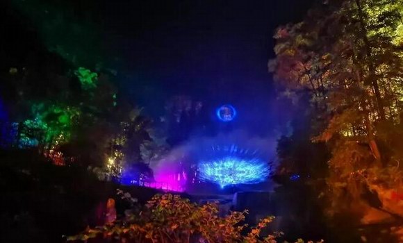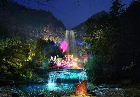 在完全保護(hù)景區(qū)原始景觀的前提下,將懸崖峭壁、飛流瀑布,螢火森林等壯觀景色在夜色中綻放出另一番意境。