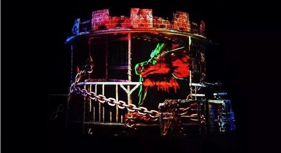 講述飛龍作惡的3D MAPPING城堡投影