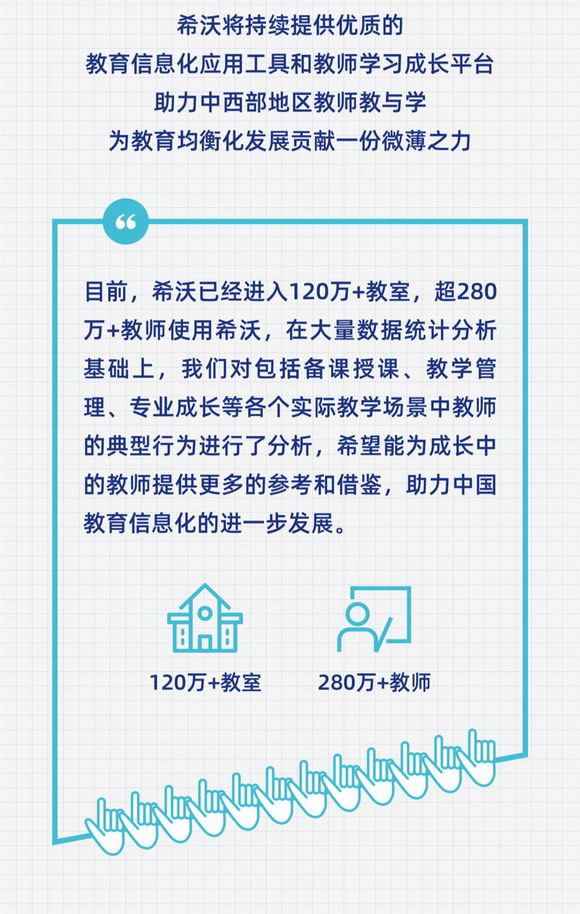 恰逢希沃十周年之際,希沃教育研究院聯(lián)合教育均衡化發(fā)展聯(lián)盟發(fā)布了《交互式多媒體教學(xué)環(huán)境下K12教師信息化教學(xué)行為分析報(bào)告》,基于海量希沃?jǐn)?shù)據(jù),全方位洞察信息化教學(xué)發(fā)展趨勢(shì)和特征,進(jìn)一步助力教師成長。