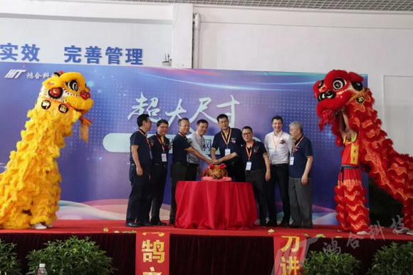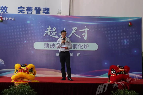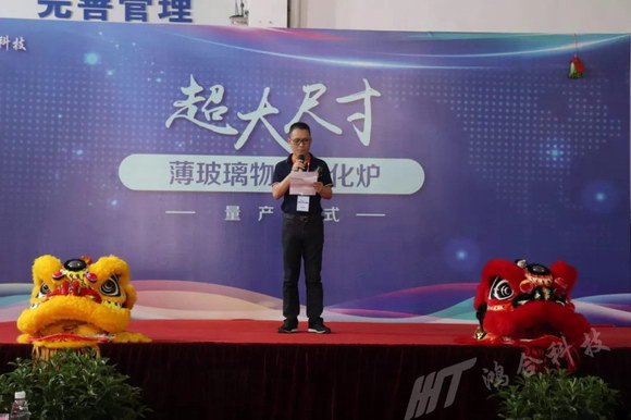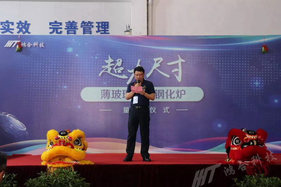 2019年7月11日,鴻合科技股份有限公司超大尺寸薄玻璃物理鋼化爐量產儀式在廣東東莞隆重舉行。鴻合科技董事長王京、總裁張樹江、高級副總裁兼高端制造BG總經理柯根全、供應鏈副總裁尹立斌;李賽克玻璃建材(上海)有限公司執行總裁喬馳、大中華區銷售總監Makus Maderthaner,深圳東方硅源科技有限公司董事長丘智林、總經理劉勇,以及各界朋友與業內同行紛紛出席本次啟動儀式,共同見證鴻合科技全球首套超大尺寸薄玻璃物理強化設備的量產儀式。