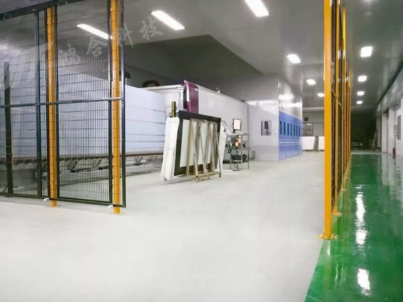 鴻合科技超大尺寸薄玻璃物理鋼化生產車間