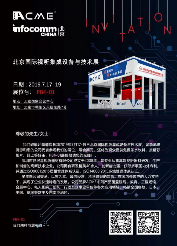 其中,ACME(艾可美)銀幕品牌攜曜影系列新品——抗光硬幕震撼發布,并引發熱議:創意新品——可使用的藝術品將席卷“帝都”!更多的贊美之詞我們Infocomm發布會上見。