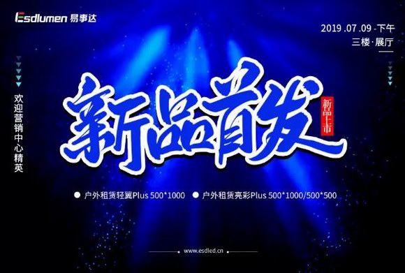 2019年7月9日下午,在易事達電子三樓展廳舉行發布會,正式發布戶外租賃新品輕翼Plus 500*1000和亮彩Plus P3.9/P4.8。