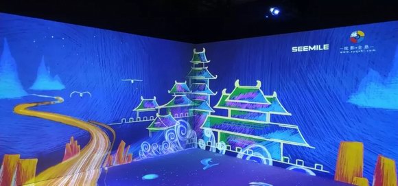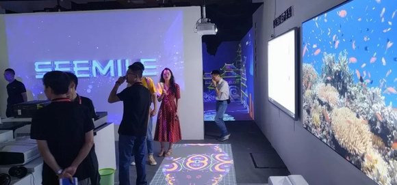 視美樂在展會現(xiàn)場用激光投影為孩子們開辟了一方小天地,游魚和飛鳥只在一線之隔,畫面無限延伸,仿佛在邀請著大家共赴一趟充滿想象力的視覺之旅。