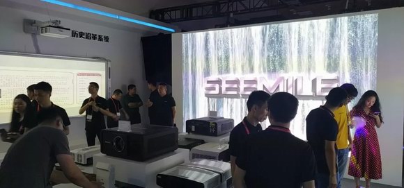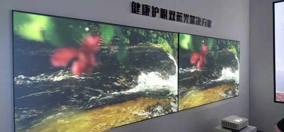 展會現(xiàn)場,視美樂展示了180寸的巨幕投影效果。色彩準(zhǔn)確、明艷;畫面通透、光線感強(qiáng)烈;聚焦清晰、細(xì)節(jié)豐富。