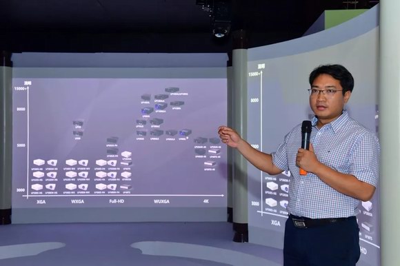 國畫始終將高分辨率、高亮度作為技術研發的重點方向。去年InfoCommChina展會上,國畫發布了全球首款單DLP雙色4K激光工程投影機LP50UM,今年國畫在該平臺實現了家族化發展,形成了從超短焦、短焦到中長焦,亮度范圍從4000流明到7000流明的產品矩陣。在高亮度平臺方面,國畫在自主研發的LP160UL平臺上,進一步上下延展,以2000流明為層級,形成了從12000到18000流明完備產品系列。國畫高分辨率、超高亮度的高端激光工程機系列的研制成功和產業化,為國內高端投影設備選型提供全面自主保障。