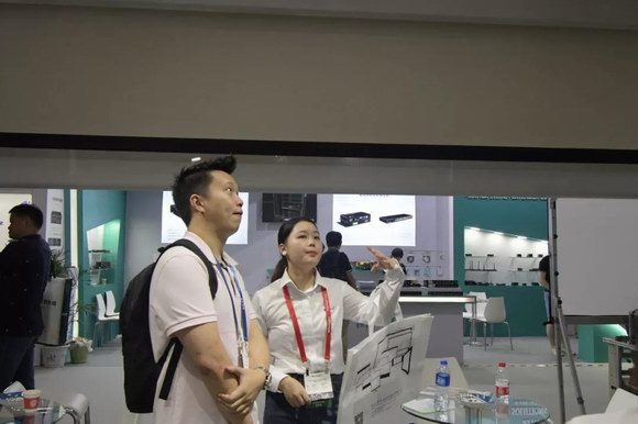 從早上9點開館開始,ACME(艾可美)展廳就開始陸陸續(xù)續(xù)有客商進(jìn)入,從前廳接待處→家庭影院展區(qū)→大型工程場館展區(qū)→洽談區(qū),整條參展線幾乎持續(xù)保持爆滿狀態(tài)!
