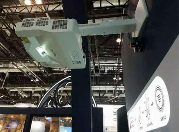 展會現(xiàn)場,還以機身異形投影的方式展示了麥克賽爾主打產(chǎn)品,并展示了麥克賽爾投影機悠久的歷史,讓觀眾全方位了解麥克賽爾。