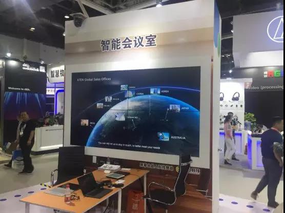 ATEN宏正展出的智能會議室,完美實現(xiàn)視頻流匯入?yún)R出,多信號之間的無縫切換,而且支持集成會議室內(nèi)眾多專業(yè)級影音設備,擁有簡單友好的人機交流界面,還可無縫接入監(jiān)管控平臺。