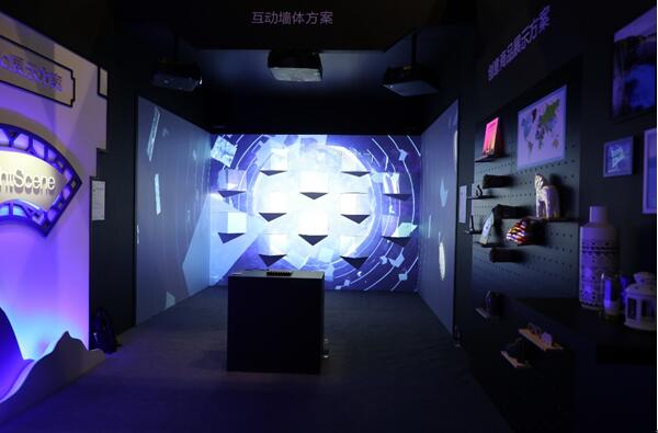 全身沉浸多元互動——互動投影一直是行業(yè)應(yīng)用的一個熱點(diǎn)。這屆IFC展會愛普生的互動投影方案進(jìn)一步升級,變成了沉浸式互動、三維視覺和肢體全面挑戰(zhàn)。愛普生3 臺CB-L1715SNL 15000流明SXGA+分辨率投影機(jī)與ELPU04 短焦變焦鏡頭通過3D mapping方式投射在4mX3mX3m BOX背景墻上,打造出一個全景互動平臺,讓“臨場體驗”進(jìn)一步升級。