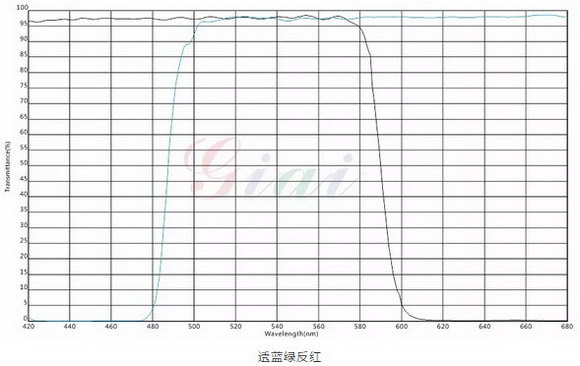 a、透綠藍反紅:430nm-560nm@Tave>97%;430nm-560nm@Tmin>95%;615nm-680nm@R>98%