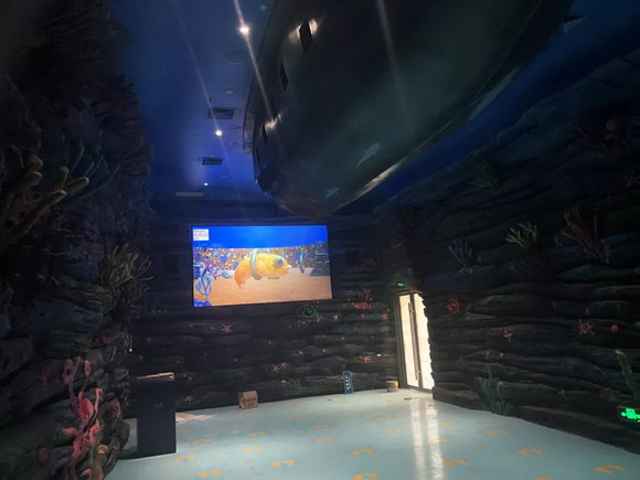 《章魚大進(jìn)擊》是以“營救小章魚”為主題設(shè)計(jì)的5D 動(dòng)感影院。贏康為主演區(qū)和預(yù)演區(qū)進(jìn)行了投影設(shè)計(jì)工作。