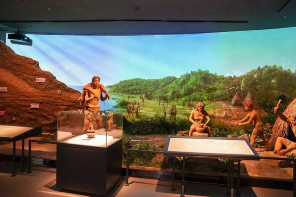 展項曇石山春秋講述了7500年前,福建出現原始氏族部落,距今3000年上下,隨著海平面繼續下降,閩江下游更多沙洲成陸,農耕經濟快速發展,閩族部落逐漸形成規模。該展項通過索諾克激光工程投影機投射在場景畫上,以虛實結合的形式表現曇石山人一年四季的生產和生活情景,動態展示原始人的生活習性。逼真的人物及場景模型配合4臺索諾克SNP-LU6600激光工程投影機的HSG色彩調整功能所呈現的真實色彩將曇石山人一年四季的生產和生活情景演繹得栩栩如生。