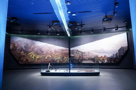 該展項主要講述鴉片戰爭后,在民族危亡、災難深重之際,林則徐、嚴復等一批仁人志士追求真理,敢為天下先,傳播先進思想,推動近代中國的歷史進程。以及民國以來,風云激蕩,閩侯英烈為推翻黑暗統治而前仆后繼。在中國共產黨領導下,終于迎來了新中國的誕生。該展項通過半景畫場景,結合定制影片,重現福州戰役的重要一幕。該展項中索諾克SNP-LU6600激光工程投影機以其高亮度和高對比度效果投射的生動逼真的硝煙炮火結合半景畫場景精彩再現新中國的誕生歷史。
