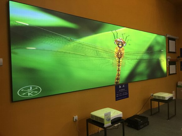鏡頭,百寸畫面的投射距離僅需50cm左右,實現超短距離內的大畫面影像享受并節省安放空間。因此十分適合局促狹小環境里的展項搭建,