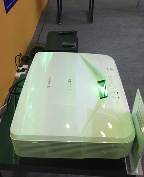 很多展項都離不開投影機的協助。夏普XG-LU300XA就憑借其超短焦距的優勢,分別在屏幕融合和智能會議體驗中,完美配合友商實現清晰的展項呈現。