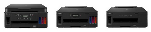 佳能騰彩PIXMA 加墨式高容量打印機新品G6080、G5080、GM2080(從左至右)