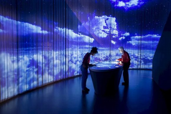 參觀博物館之初,每位游客都會收到一個(gè)裝有存儲介質(zhì)的濃縮咖啡杯。通過將杯子放置在交互式桌面上,可以控制沉浸式360°投影的順序。