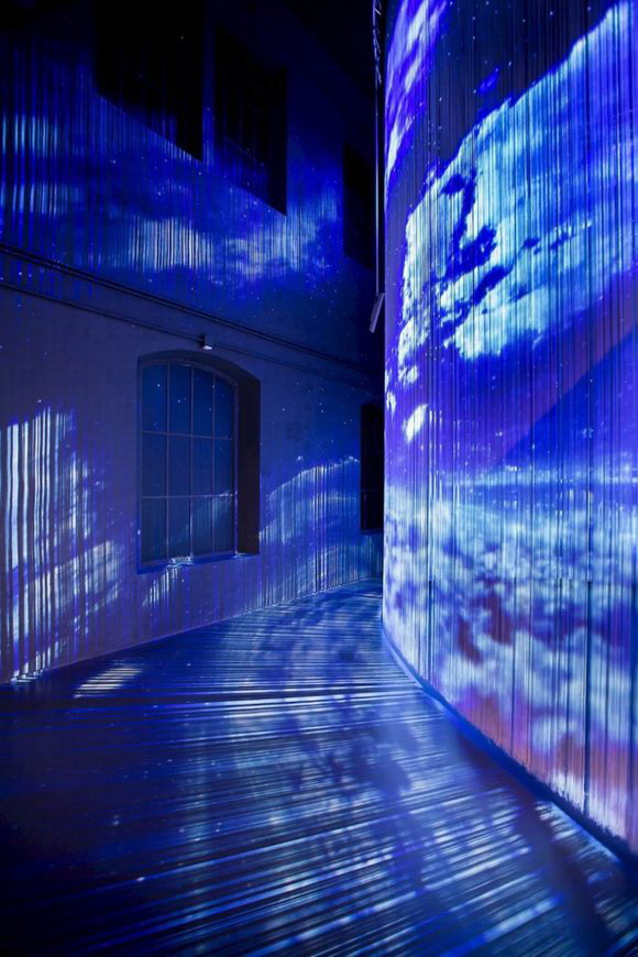 經(jīng)由博物館的線性樓梯浸入下來,游客通過觸摸或移動該簾幕,像燈光雕塑一樣,觸覺空間也會在視覺上影響相鄰的博物館區(qū)域,從而體驗(yàn)到光影的流動與變幻。