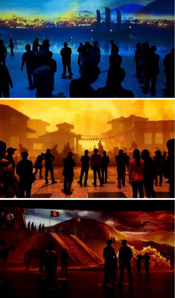 武術(shù)場景和油漆風(fēng)格的動畫,線性敘事增加了互動元素,用15分鐘的時(shí)間在400平方米的互動和多媒體空間中帶領(lǐng)游客體驗(yàn)和感受公元前514-496春秋時(shí)期吳國崛起的故事。