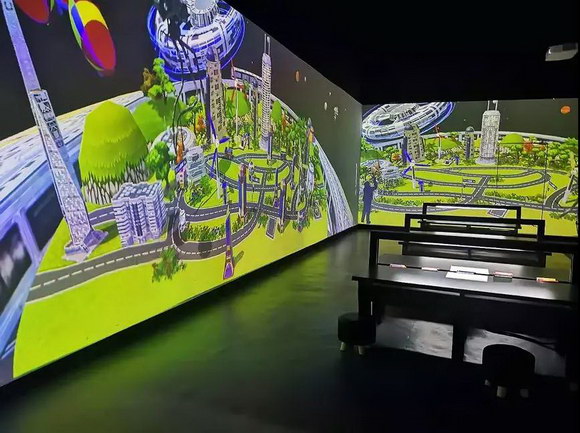 分辨率),搭建了一個四面環繞的沉浸式數字展廳。
