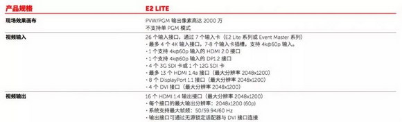 對(duì)于大多數(shù)演出來說,并非所有的畫面呈現(xiàn)都需要4K支持,但卻都需要集成與使用的靈活性。E2 Lite的推出,是對(duì)Event Master系列靈活性的強(qiáng)有力補(bǔ)充:E2 Lite支持與Event Master系列所有控臺(tái)搭配使用;同時(shí)可實(shí)現(xiàn)與另外一臺(tái)E2 Lite連接共同使用;Event Master板卡也可應(yīng)用在E2 Lite產(chǎn)品上,減少了客戶的重復(fù)投入,提高了投資回報(bào)率。