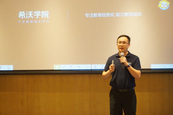 交流中,大家也提及當(dāng)下名師工作室存在的問(wèn)題:一是團(tuán)隊(duì)目標(biāo)不清晰,管理過(guò)于松散;二是缺乏數(shù)據(jù)支持,做了事情沒(méi)有量化體現(xiàn);三是影響力有限。基于以上問(wèn)題,希沃教育研究院的何家鑫老師帶來(lái)《專注教育信息化,助力教師成長(zhǎng)》的專題分享。