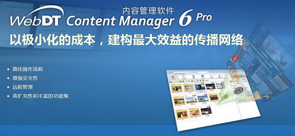 WebDT 內(nèi)容管理軟件是WebDT數(shù)字標(biāo)牌系統(tǒng)的主要組成部分之一。WebDT 內(nèi)容管理軟件是采用網(wǎng)頁界面的服務(wù)器軟件,能集中管理廣域網(wǎng)、局域網(wǎng)上的媒體播放器。自動(dòng)識(shí)別各種多媒體文件格式,依照播放清單時(shí)間表、儲(chǔ)存在中央資料庫中,分發(fā)到網(wǎng)絡(luò)上的各類型媒體播放器,按照時(shí)間表播出發(fā)布。 簡言之,通過 WebDT 內(nèi)容管理軟件,欲播放的多媒體訊息就會(huì)組合起來、排定時(shí)間,并且使用具有知識(shí)產(chǎn)權(quán)的網(wǎng)絡(luò)分布式發(fā)布應(yīng)用,安全、高效、穩(wěn)定地播放。