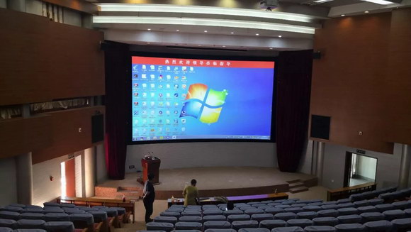 此次沈陽建筑大學(xué)報(bào)告廳在安恒集團(tuán)的幫助下順利完成改造,利用單臺投影機(jī)正投的方式,打造長7.6米,高4.25米的巨大顯示畫面。高清分辨率高亮顯示,讓原本灰暗的屏幕立刻明亮了起來。