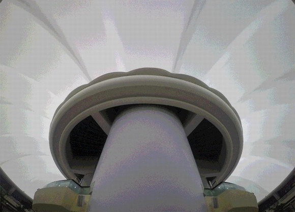 巨大的環形穹頂畫面震撼,營造出良好的沉浸感。而立柱作為連接地面與天頂視區的天然橋梁,能夠彌補單調的橫幅影像表現力的缺失,讓動畫更生動、豐富、立體。進入0米大廳仿佛穿越了整個上海,將城市美景盡收眼底。
