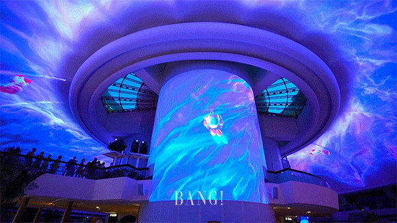 2019年8月,世界最大的穹頂投影秀「聚·上!乖跂|方明珠電視塔零米大廳重磅上演!斥資千萬打造的巨幕穹頂投影,面積高達2500平方米,投影畫面相當于5塊IMAX屏幕,堪稱史上之最。
