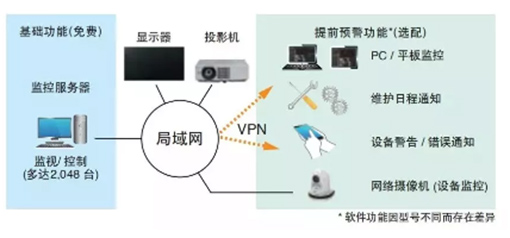 松下激光光源投影機PT-BMZ\BMW系列適用于松下投影機配置的多臺投影機監控免費軟件,老師們可通過局域網使用一臺電腦同時監控最多2048臺投影機,實時了解投影機狀態,控制調整投影機執行情況,減少了老師們在放學后、暑假期間對于投影機設備監控維護的人力與時間成本,實現遠程高效管理。