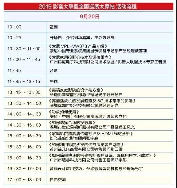 “索尼真4K/智能/全景聲2019影音大聯盟中國九城市高端家庭影音娛樂巡展”(以下簡稱“影音大聯盟巡展”)第6站——太原站將于太原湖濱國際大酒店/山西國際會議中心(迎澤大街180號/青年路5號)舉行。屆時,歡迎當地及周邊省市影音業界同仁及發燒友蒞臨觀摩體驗。
