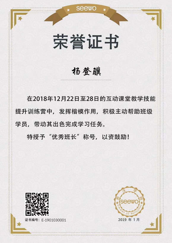 希沃杏壇計劃是希沃教育研究院發起的全國教師信息技術與學科融合能力提升項目,認證為希沃杏壇三星導師,意味著他們成為本區域信息化教學的骨干教師,具備組織培訓的能力。
