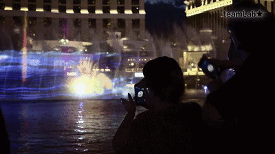2016在拉斯維加斯舉辦的日本Kabuki Festival中,上演了一場水幕投影盛宴。由Shochiku與teamlab共同創作。其中的趣味交互環節,觀眾可以使用手機在水幕上釣“魚”。