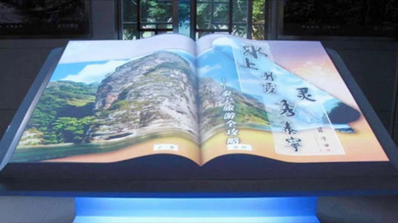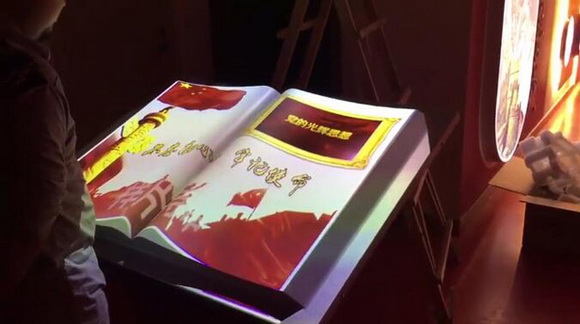 我們可以看到,電子翻書是指在參觀者面前呈現一本投影成像的虛擬書,當參觀者伸手做出翻書的動作時,無須接觸任何實體按鈕,就能輕松地翻一頁,而且伴隨著栩栩如生的動態翻頁效果,還有翻書的音效,讓人覺得非常神奇。