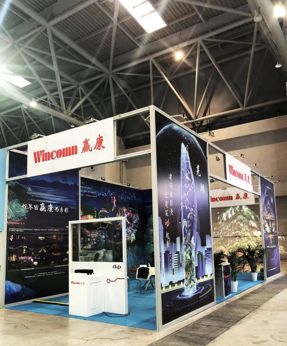 9月12日,重慶國際文化產業博覽會(簡稱“重慶國際文博會”)在重慶國際博覽中心盛大開幕。本次文博會邀請到了20多個國家的國際文化參展商,國內參展商數量更是歷屆之最,共有城市文化成果館、“一帶一路”國際文化館、綜合文化藝術館、“一帶一路”國際貿易館、特色文化產業交易館五大主題展館,為現場眾多參觀群眾呈現了豐富多樣、精彩有趣的交流盛會。贏康作為優秀文化裝備企業代表受邀參展,在N6館6T-019展位上展出了4K激光投影秀與dnp透明屏幕兩個精彩項目。