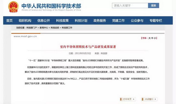 上海三思的反射式發光技術LED燈具獲國家863科研成果