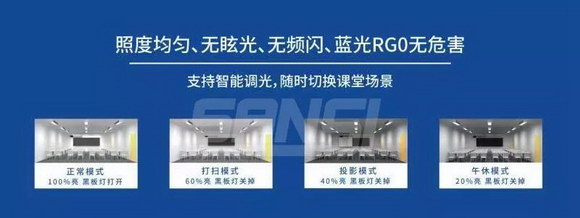 此外,新安裝的健康護眼教室燈還采用智能控制模式,支持不同學習場景下的多種智能調光系統,使教室內的整體照明水平因學習場景而自動調節,達到人眼視覺、基礎照明氛圍及設備演示的高度協調,營造健康的整體照明環境。