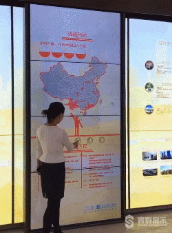通過(guò)特殊設(shè)計(jì)的機(jī)械滑軌控制裝置,結(jié)合高清液晶拼接幕墻,實(shí)現(xiàn)對(duì)屏幕內(nèi)容的互動(dòng)控制。滑動(dòng)到不同位置屏幕展示相關(guān)信息,包括圖片、文字、視頻等,觀者用手在液晶屏上行動(dòng),一目了然。當(dāng)來(lái)賓離開(kāi)后,屏幕在一定的時(shí)間里無(wú)人操作,將會(huì)自動(dòng)回來(lái)最初的位置。