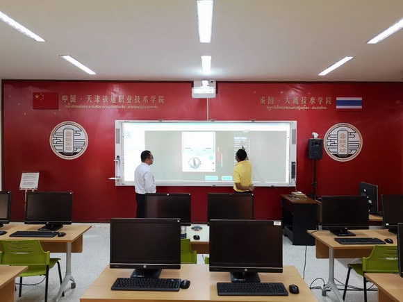 魯班工坊是在教育部指導(dǎo)下,天津市首創(chuàng)并率先主導(dǎo)推動(dòng)實(shí)施的職業(yè)教育國際品牌,已經(jīng)跟隨“一帶一路”去世界各地,153寸雙通道超寬屏白板一體機(jī)+PROPIX派克斯超短焦激光投影機(jī)也代表中國優(yōu)秀職教成果走向了世界。