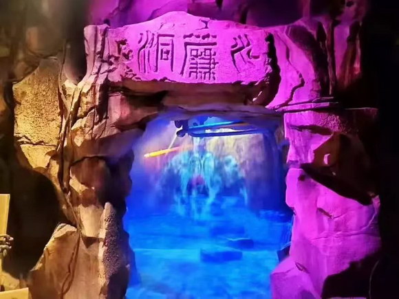 1:1還原電影的水簾洞中,亦真亦幻的霧幕投影,平添幾分神秘感。電影畫面籠罩在一層若有似無的薄霧中,時而清晰,時而分散,在燈光與電影原聲的配合下,突破次元壁,將真實的電影世界帶到了“大話迷”們的面前。