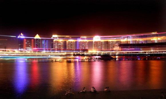 更喜歡晚上的如意湖,世界突然安靜下來,人們?nèi)齼蓛桑蕾p夜色,與親友交談,耳邊傳來的只有柔和樂曲,覺得音樂隨著微風(fēng)而來,煩惱都被吹走了呢。