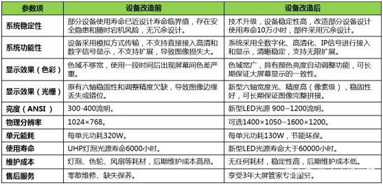 面對(duì)DLP大屏幕拼墻系統(tǒng)老舊問(wèn)題,Lumens推出的升級(jí)改造、維保維修等相關(guān)換機(jī)解決方案,在原有設(shè)備充分利舊、 節(jié)能環(huán)保、資源再生的原則上,實(shí)施技術(shù)升級(jí)改造,既能實(shí)現(xiàn)和滿(mǎn)足用戶(hù)需求,又不致使過(guò)大花費(fèi),完美的解決了客戶(hù)痛點(diǎn)。Lumens換機(jī)解決方案保留現(xiàn)有DLP單元箱體、反射鏡、投影屏幕、大屏單元安裝底座支架等設(shè)備部件的基礎(chǔ)上,升級(jí)更換與保留部件配套的新型LED光源光機(jī)、圖像處理系統(tǒng)平臺(tái)及相關(guān)配套部件,以實(shí)現(xiàn)系統(tǒng)設(shè)備的升級(jí)、滿(mǎn)足用戶(hù)不斷增長(zhǎng)的顯示業(yè)務(wù)需求、延長(zhǎng)使用壽命及穩(wěn)定運(yùn)行的目的。之所以能做到這一點(diǎn),是因?yàn)樽鳛楸惩懂a(chǎn)品第一制造商,Lumens自主研發(fā)的AI電子智能調(diào)整技術(shù)可以自適應(yīng)所有品牌的舊單元箱體:自適應(yīng)替換任意機(jī)芯。