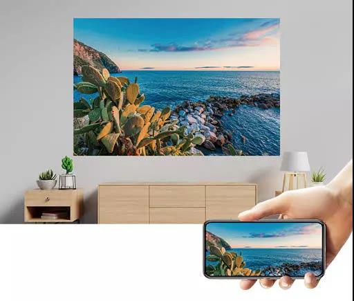 【亮 點(diǎn)】電腦、Pad、手機(jī)均可輕松投屏,大屏小屏自由切換。小屏同步在大屏之上,盡享100吋以上大畫(huà)面的辦公看片觀影追劇新生活方式。也可藍(lán)牙連接音響、耳機(jī)等設(shè)備,實(shí)現(xiàn)真正意義上的All in one。