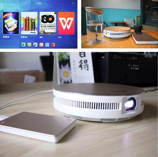 華錄微投紐扣N1有太空銀、香檳金兩款機型,可搭配當下流行的北歐風、極簡風等時尚家居,科技感十足。它體積小巧,僅重1.5kg,只需一根電源線、一面墻就能實現便捷投影。